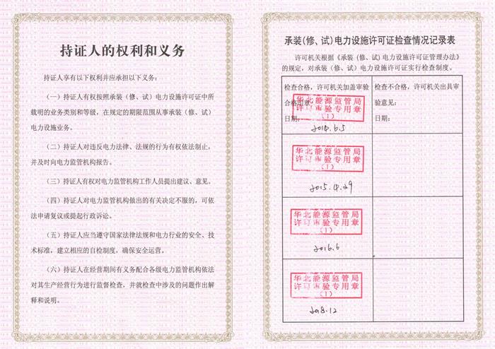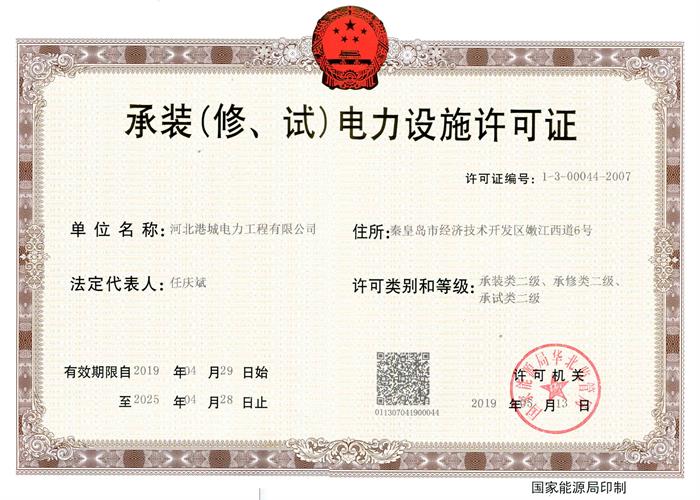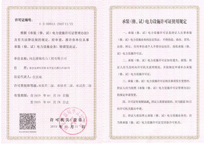 承裝(修、試)電力設施許可證